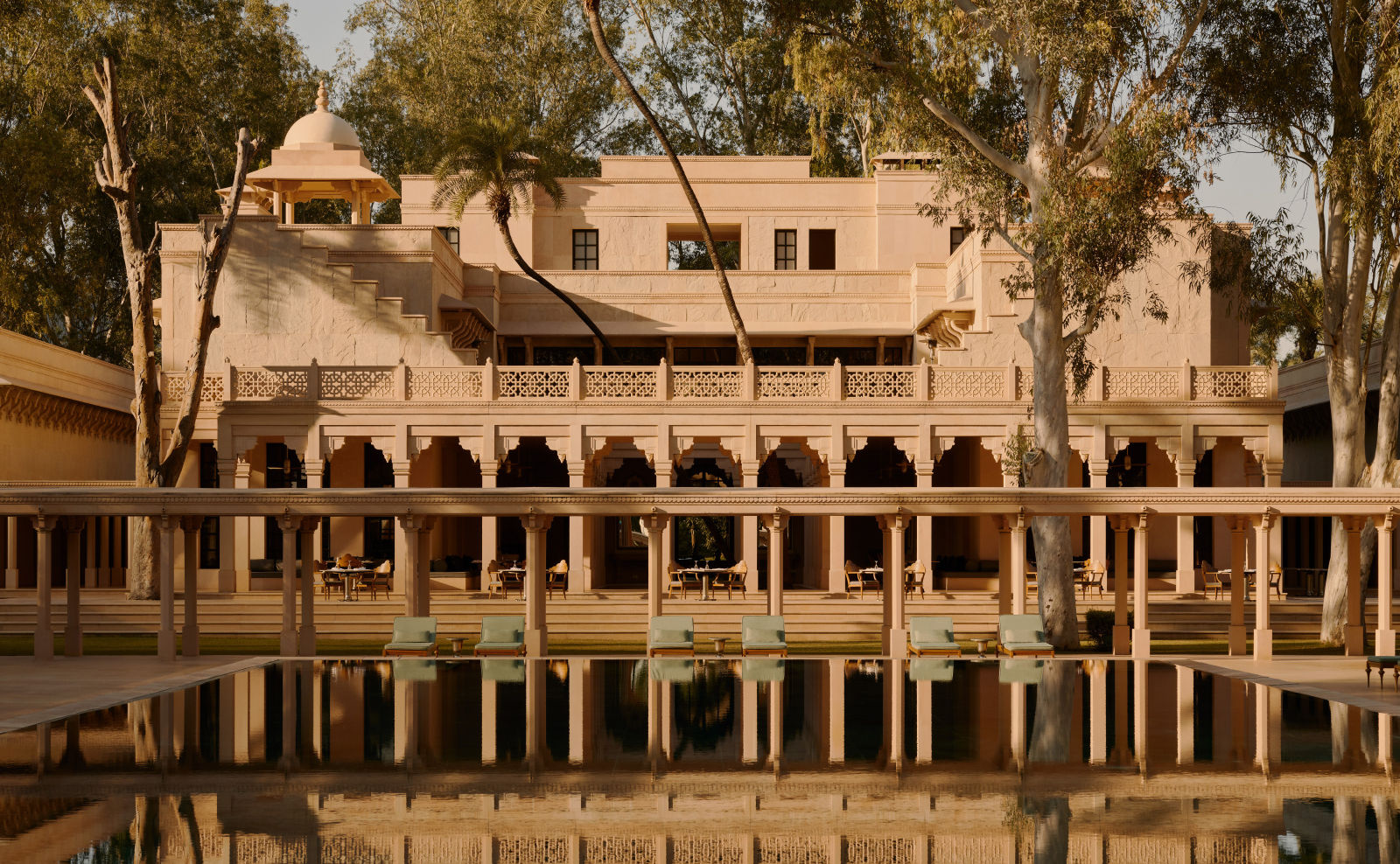 Tucked away in the Aravalli Hills, Amanbagh is an oasis of serenity and elegance. This exclusive resort showcases Mughal-inspired architecture, with domes, arches, and lush courtyards.