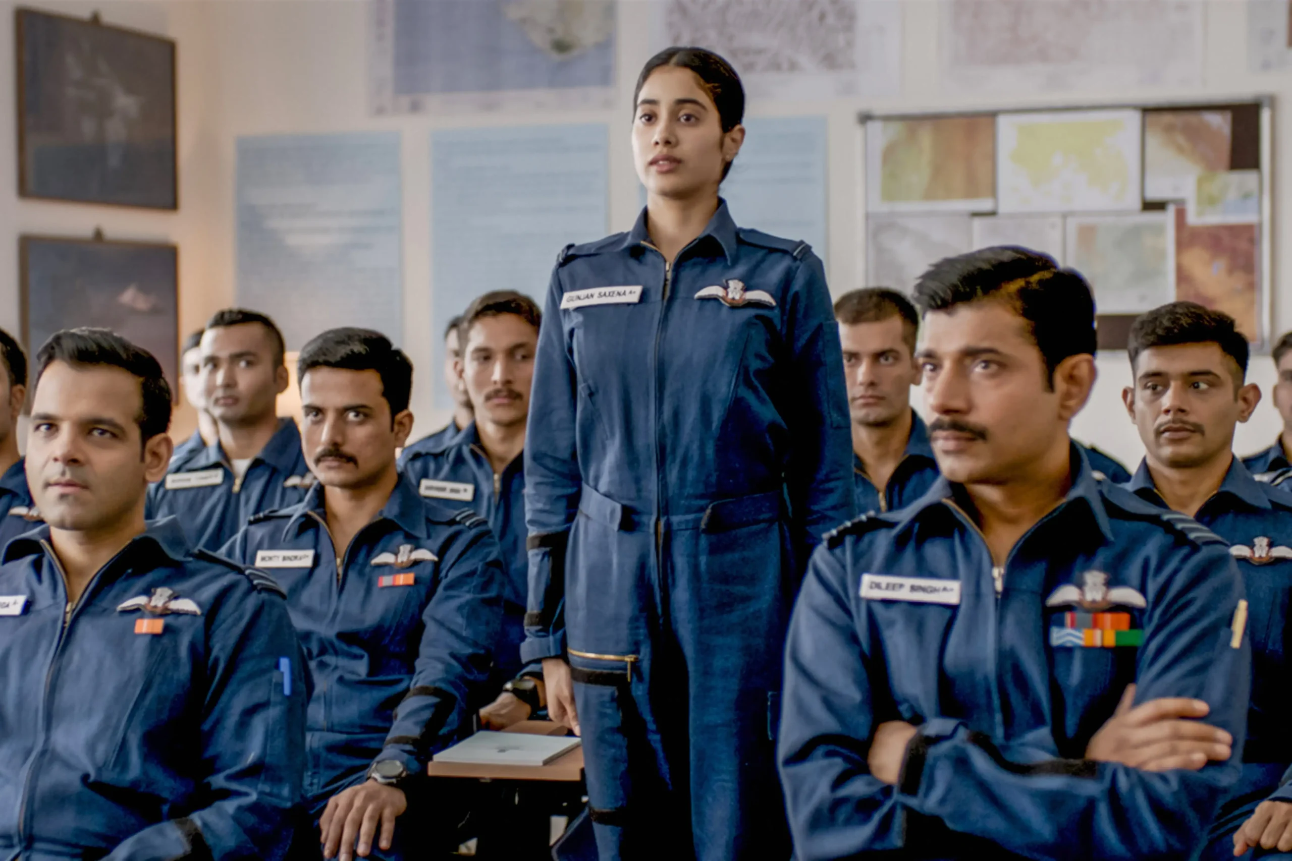 The most gripping scenes in the biopic of the first woman Indian Air Force officer to serve in combat take place in the barracks, rather than in the air. Gunjan (Janhvi Kapoor) must show that she is just as capable and fearless as the next man in this situation.