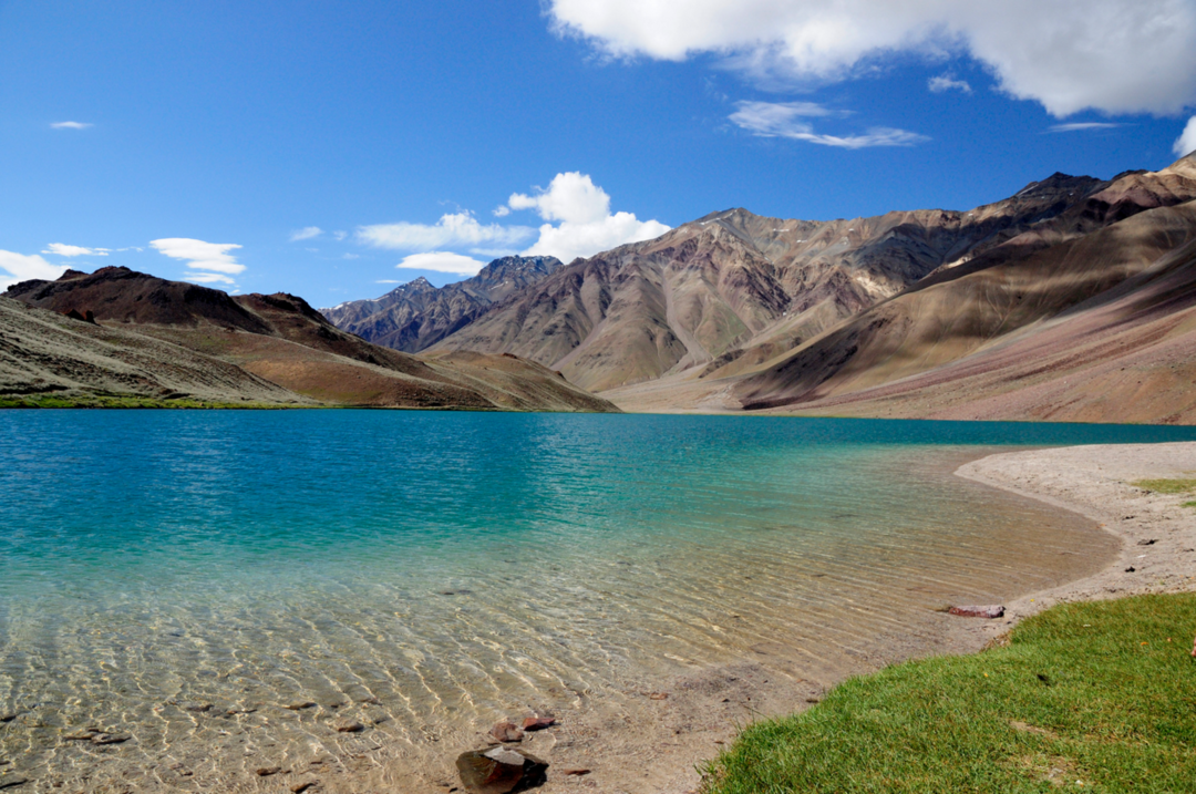 The serene and almost surreal landscape around Suraj Tal is a sight to behold. The pristine blue waters against the barren mountain terrain create a stark contrast that’s both beautiful and tranquil.
